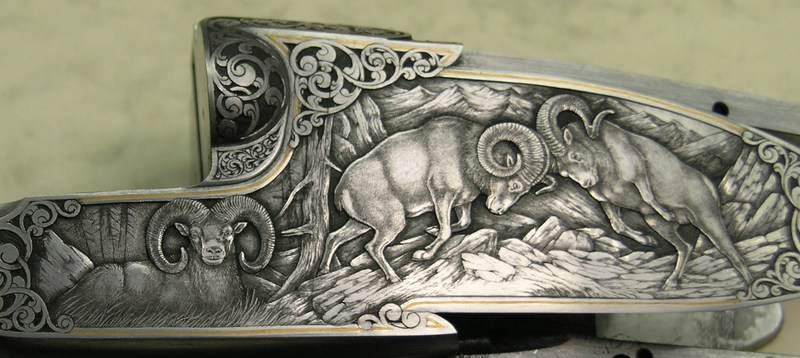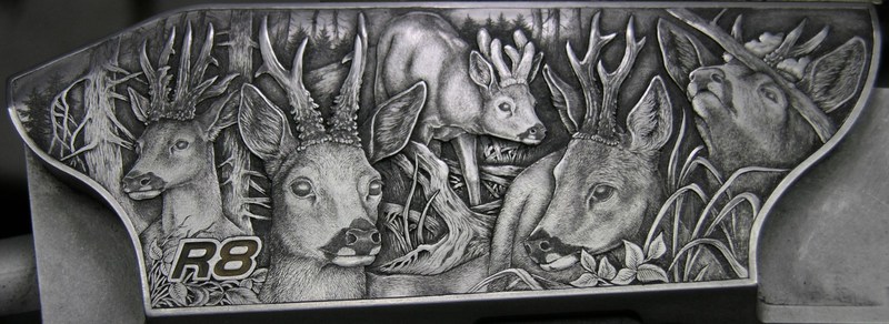 Folgende Jagdwaffen zeigen Gravuren vom heimischen Wild.